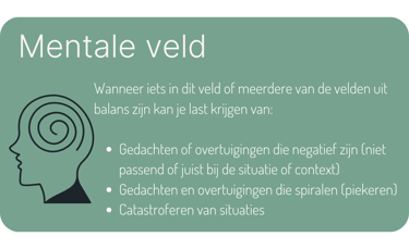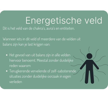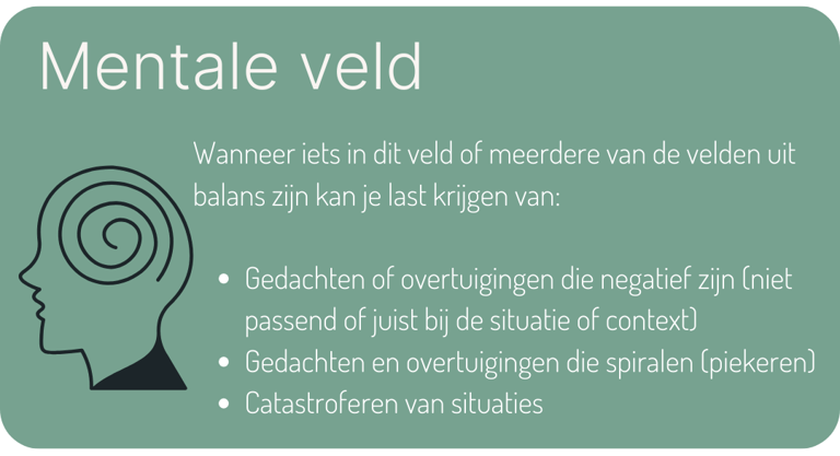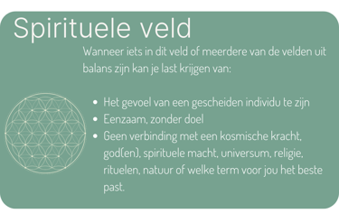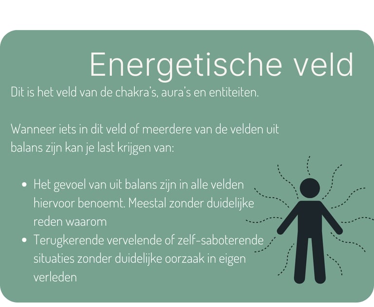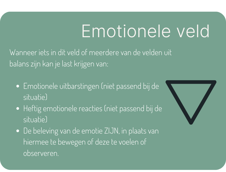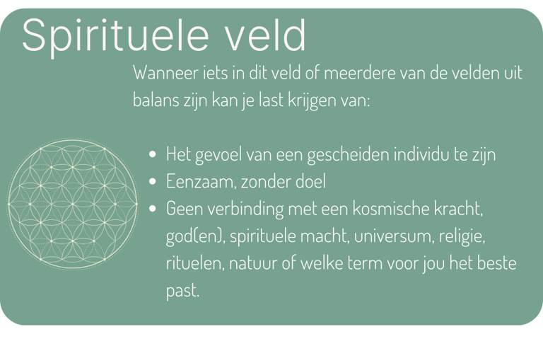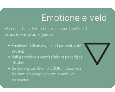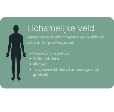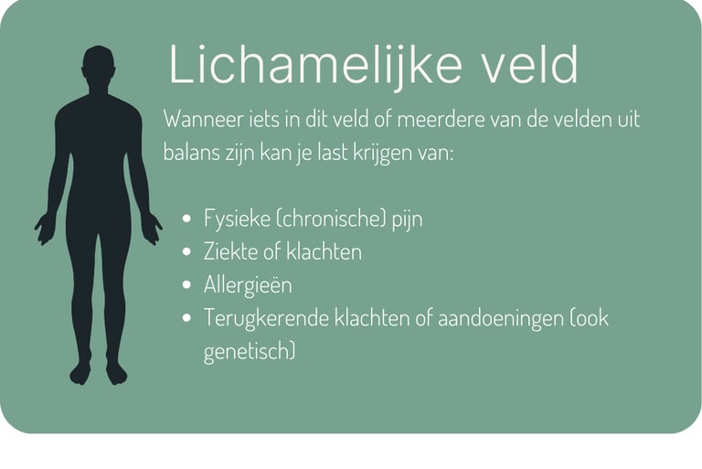 Hieronder is een overzicht van de verschillende velden van ons zijn, en hoe ze mogelijk aandacht vragen als ze uit balans zijn.